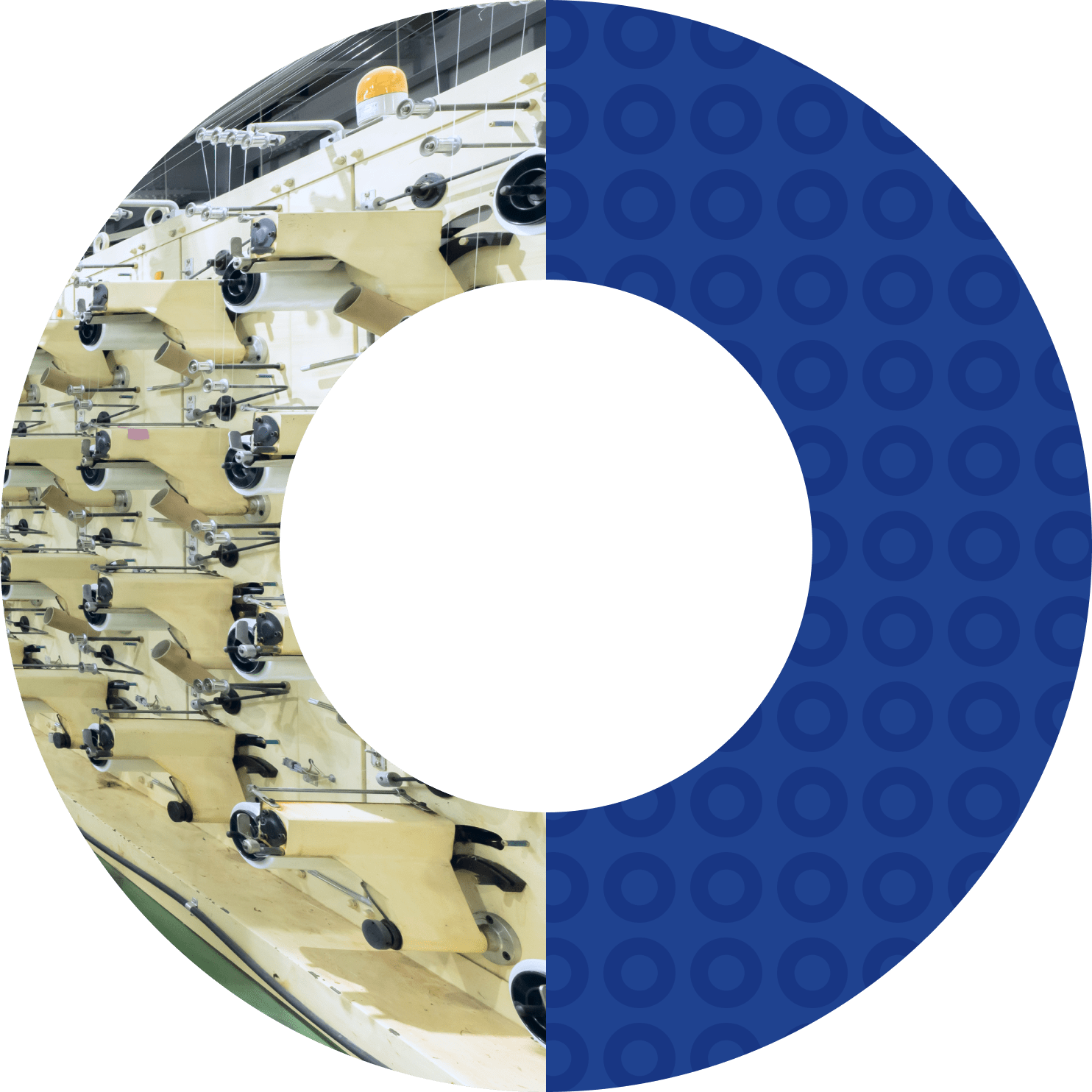 織り込むことで素材に付加価値をつけるクロス生産を、主に三原工場にて行っております。