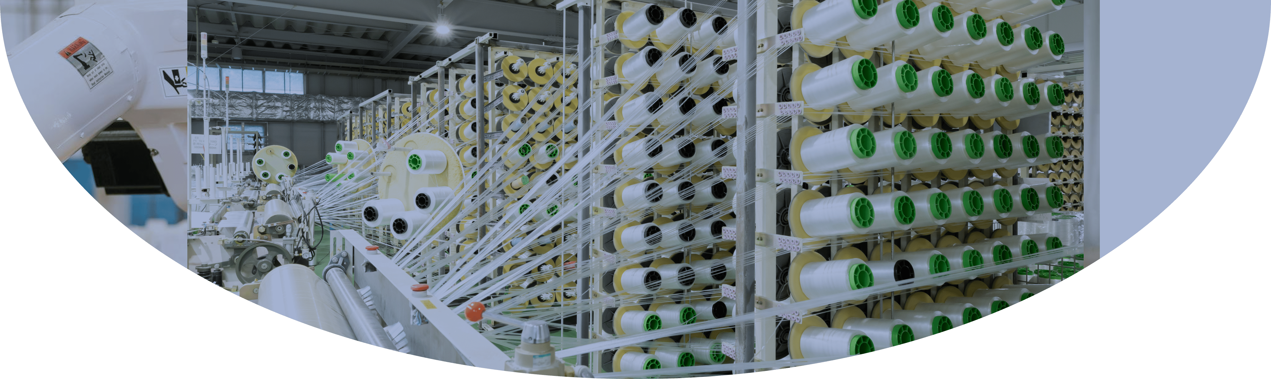 クロス製造(ヤーン、製織)、ラミネート加工からその後の仕上げ工程までお客様のご要望に沿った製品を一貫生産体制で行い、技術開発、品質管理、納期管理に努め、高品質かつ短納期な製品づくりを実現しています。
