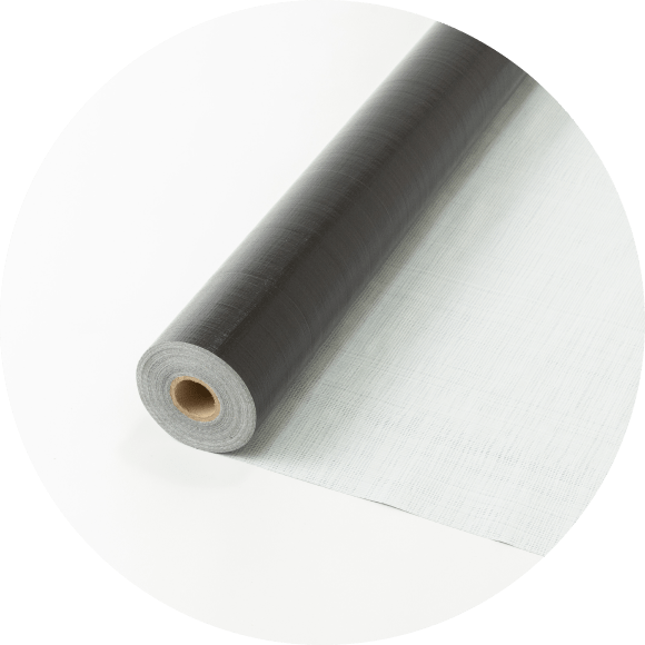 ポリオレフィン系素材の樹脂を使用して、ラミネート加工の主要資材であるクロス(織物)を製造しています。