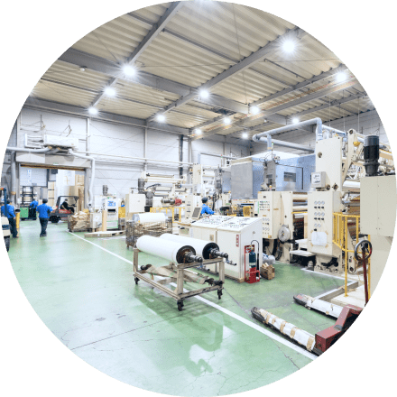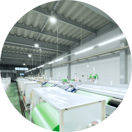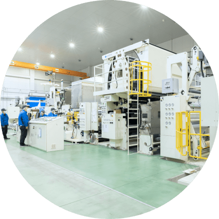 クロス加工・ラミネート加工分野において、お客様の多様なニーズに応える高品質な製品を提供し、資材業界のリーディングカンパニーとして、社会の発展に貢献します。