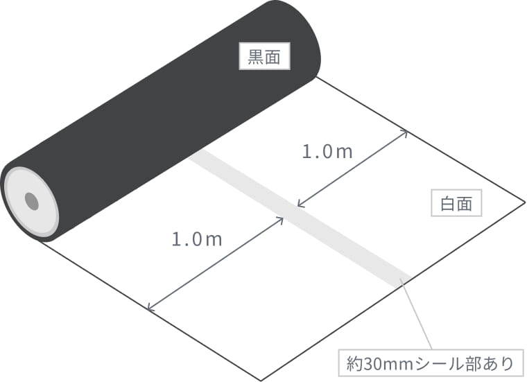 裏側の黒面は、90%以上の遮光率があるため、雑草の成長を抑制でき、除草剤も必要ありません。